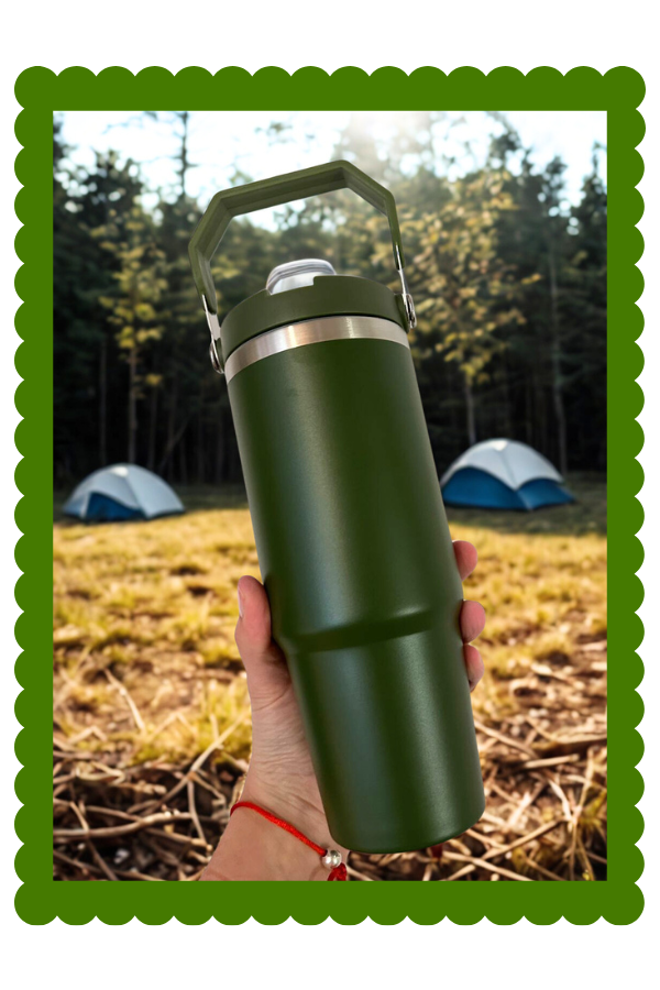 Vaso térmico 890 ml con manija y pico antivuelco. Doble capa de acero